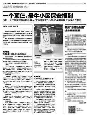 6月29日,浙江1xBET机器人技术有限公司发布新款“智能安防机器人”,目前已经和杭州多家物业达成合作意向。最快下半年,他就要出现在杭州某个高档小区里了。