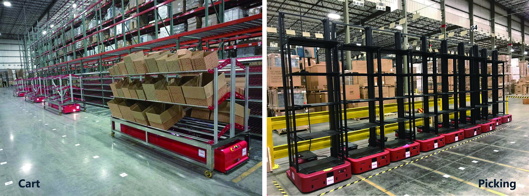 STAR SYSTEM与现有的类KIVA机器人系统相比具有更大的柔性和灵活性,经过实际运行测试,它的效率比类KIVA机器人高60%左右,仓库面积越大,效果越明显。